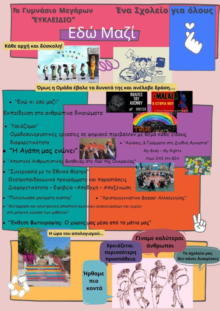 1ο Γυμνάσιο Μεγάρων Επικοινωνία: Μουσείου 1, 19100-Μέγαρα, 2296028131, email: mail@1gym-megar.att.sch.gr Ιστοσελίδα Aφίσα παρουσίασης σχεδίου δράσης – 1ο Γυμνάσιο Μεγάρων Το 1ο Γυμνάσιο Μεγάρων παρουσίασε σε μορφή αφίσας το σχέδιο δράσης που υλοποίησε το σχολικό έτος 2021-2022 στα πλαίσια του “Σχολεία Για Όλους – Συμπερίληψη Παιδιών Προσφύγων στα Ελληνικά Σχολεία”, με αφορμή το ετήσιο συνέδριο του έργου, στις 20 Ιουνίου 2022. Περισσότερα…Read more